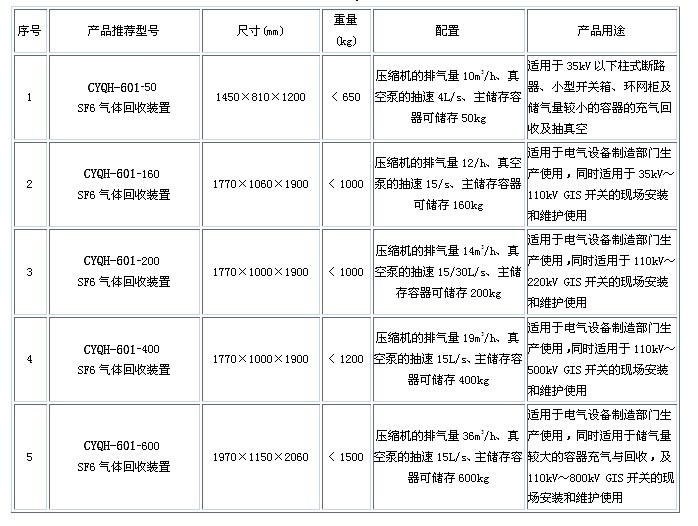 本裝置系一體式回收裝置,有抽真空系統與壓縮系統、凈化系統、存儲系統及冷凝系統。SF6氣體回收凈化充氣裝置是用于SF6氣體絕緣電器設備的制造廠,使用運行科研等部門,對各種電器設備進行抽真空,對電器設備充入SF6氣體,并從使用或試驗的電器中回收SF6氣體,同時進行凈化處理壓縮貯存到貯罐。回收裝置適用于各種電壓等級的SF6電器及GIS組合電器等。