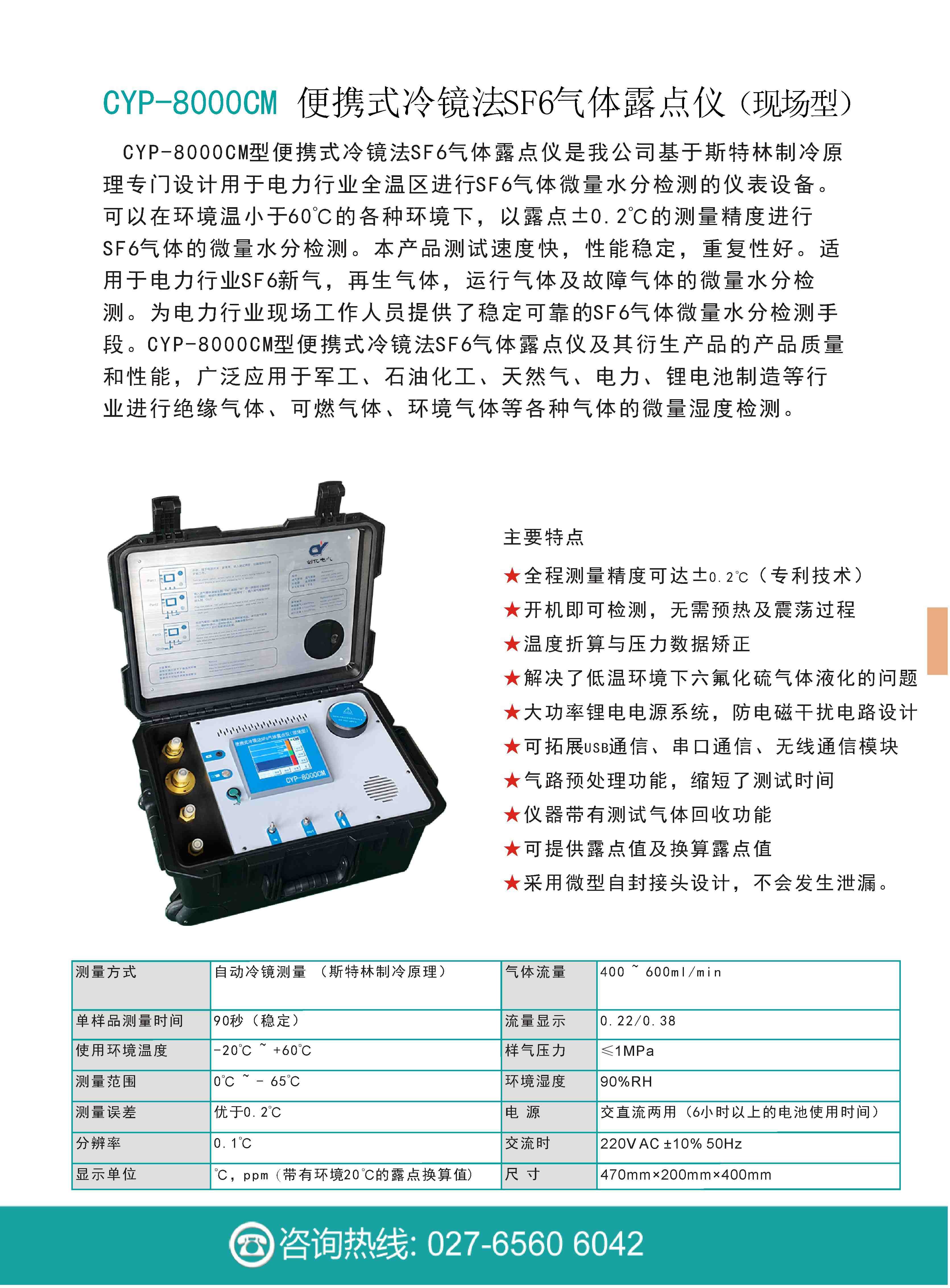 便攜式冷鏡法SF6氣體露點儀是我公司基于斯特林制冷原理專門設(shè)計用于電力行業(yè)全溫區(qū)進行SF6氣體微量水分檢測的儀表設(shè)備。可以在環(huán)境溫小于60℃的各種環(huán)境下,以露點±0.2℃的測量精度進行SF6氣體的微量水分檢測。本產(chǎn)品測試速度快,性能穩(wěn)定,重復性好。適用于電力行業(yè)SF6新氣,再生氣體,運行氣體及故障氣體的微量水分檢測。為電力行業(yè)現(xiàn)場工作人員提供了穩(wěn)定可靠的SF6氣體微量水分檢測手段。便攜式冷鏡法SF6氣體露點儀及其衍生產(chǎn)品以其優(yōu)異的產(chǎn)品質(zhì)量和性能,廣泛應(yīng)用于軍工、石油化工、天然氣、電力、鋰電池制造等行業(yè)進行絕緣氣體、可燃氣體、環(huán)境氣體等各種氣體的微量濕度檢測。